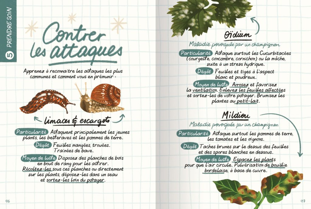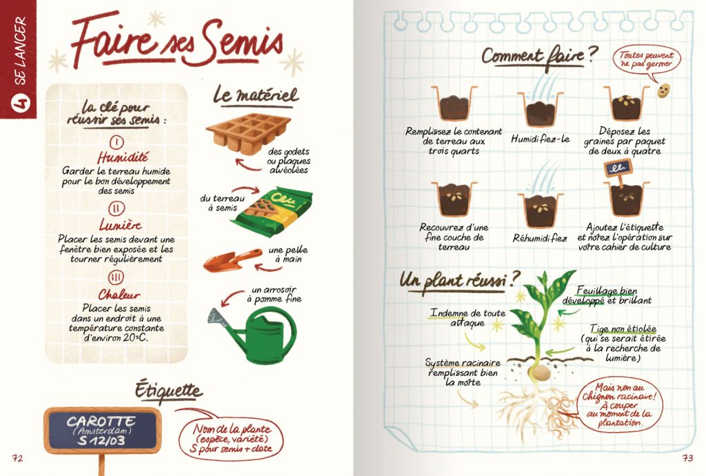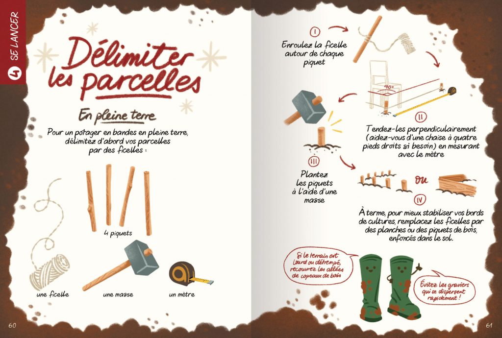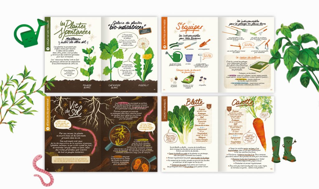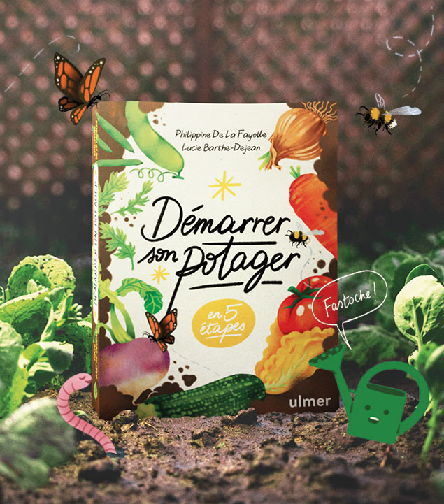 Publié en 2024 par les éditions Ulmer, Démarrer son potager est le fruit 3 ans de réflexions et d’idées partagées avec Philippine de la Fayolle, formée au maraîchage et à l’arboriculture, mais aussi intervenante pédagogique. Le résultat est un manuel à la fois très complet et très accessible, ludique par ses nombreuses illustrations et sa DA colorée.