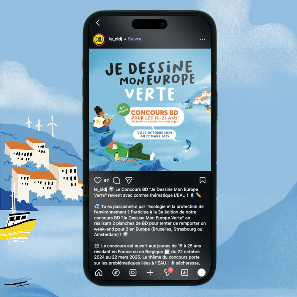 Le CIDJ (Centre d’Information Documentation Jeunesse) propose chaque année un concours BD au 15-25 ans autour de thématiques écologiques et européennes.