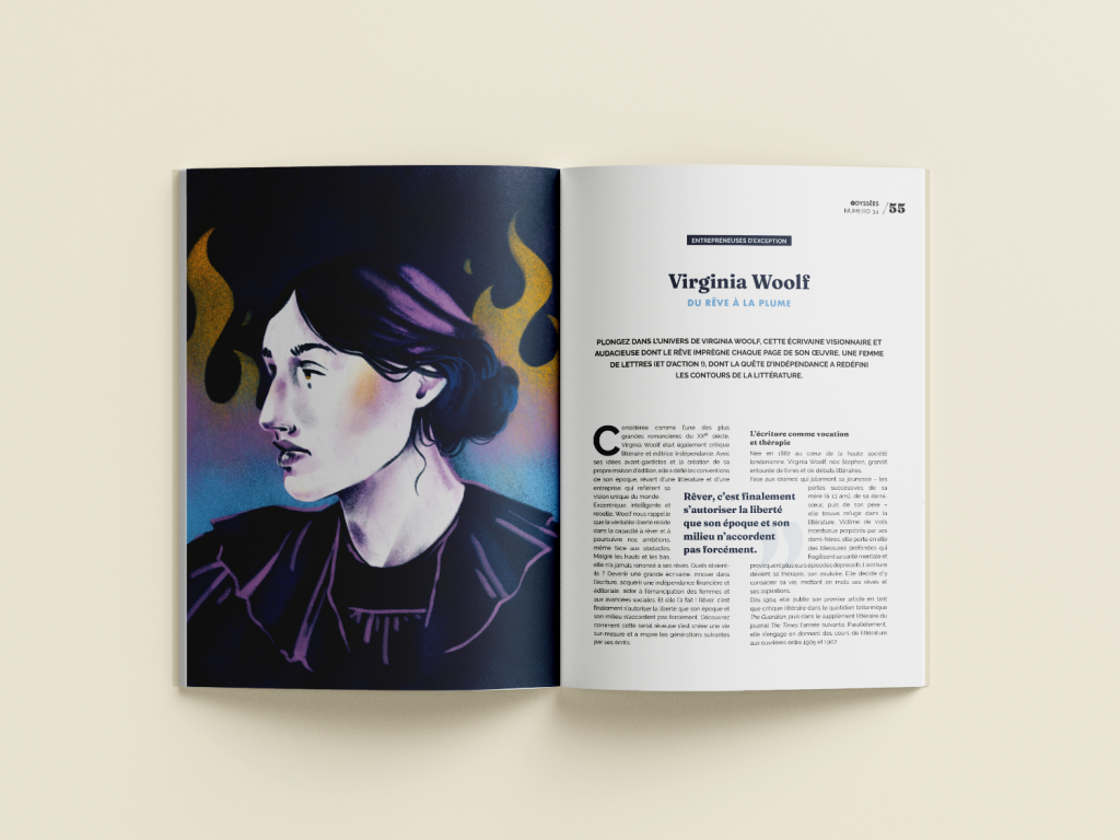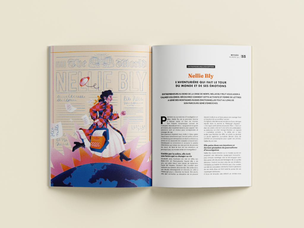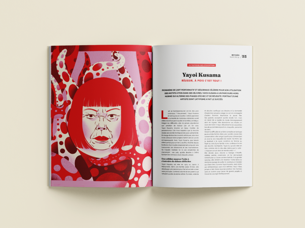 Sรฉrie de portraits rรฉalisรฉs pour les rubriques ยซย Que ferait โฆ ร ma place ?ย ยป et ยซย Entrepreneures d’exceptionย ยป du bimestriel Odyssรฉes magazine, de 2021 ร 2025. Ici : Iris Apfel, Nellie Bly, Michael Jordan, Frida Khalo, Harriet Tubman, Virginia Woolf, Ruth Bader Ginsburg, Charlie Chaplin, Yayoi Kusama, Baruch Spinoza.